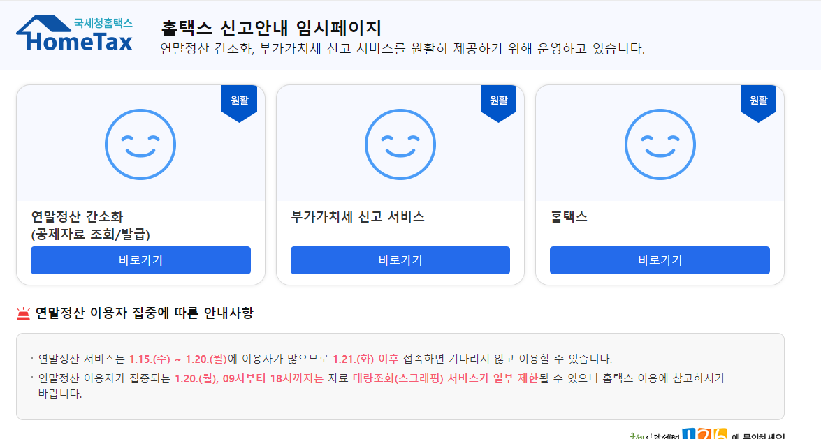 - 또한, 국세청 홈택스의 [챗봇 상담] 기능이나 고객센터(☎ 126)를 통해 궁금한 점을 해결할 수 있습니다.